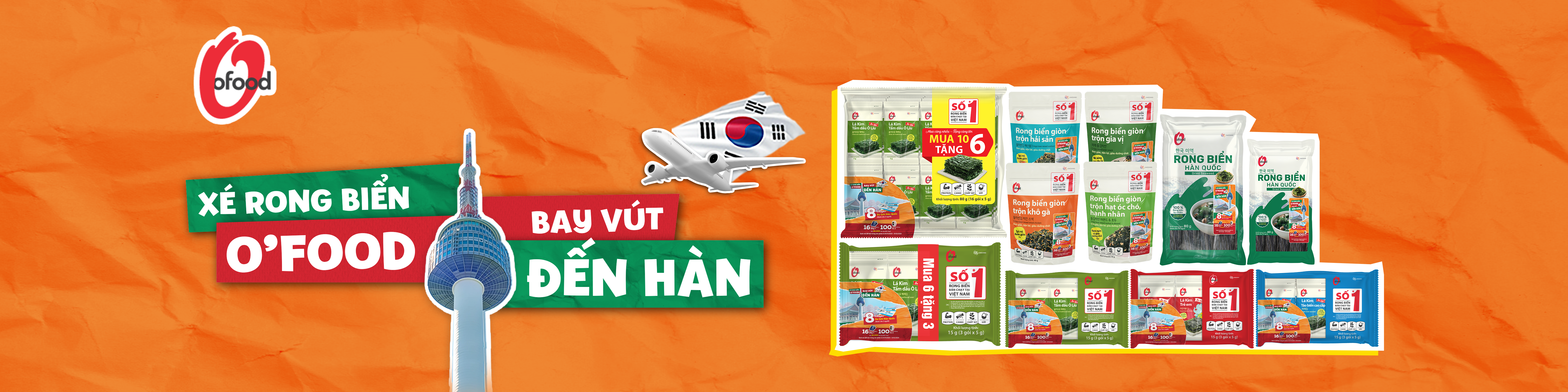 Chỉ cần thưởng thức Rong biển O’Food, xé nhãn liền tay, trúng quà liền ngay. Cơ hội bay vút đến Hàn chưa bao giờ dễ đến thế!